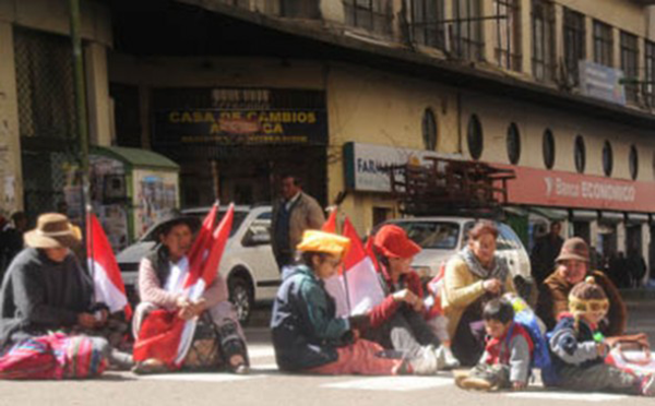 Los representantes cívicos de Potosí que llegaron a la ciudad de La Paz el martes intentaron ingresar ayer a la plaza Murillo para radicalizar sus medidas de presión en procura de dialogar con el Gobierno, pero las fuerzas del orden lo impidieron, y bloquearon la avenida Mariscal Santa Cruz. Un ampliado del Comité Cívico de Potosí (Comcipo) determinó "la toma pacífica de las empresas mineras Mánquiri, San Cristóbal y Sinchi Wayra", además de las instituciones públicas, la Gobernación, la Alcaldía y otros. El voto resolutivo que emitieron señala que sólo dialogarán con el presidente Evo Morales y no con los ministros,...